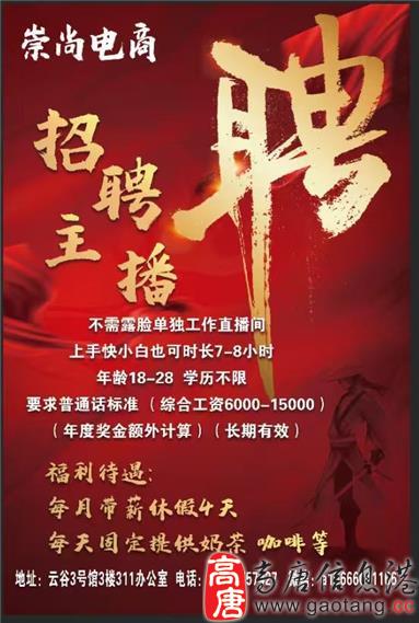 职位介绍:不需要露脸,单独工作直播间,上手快,小白也可,时长7-8小时