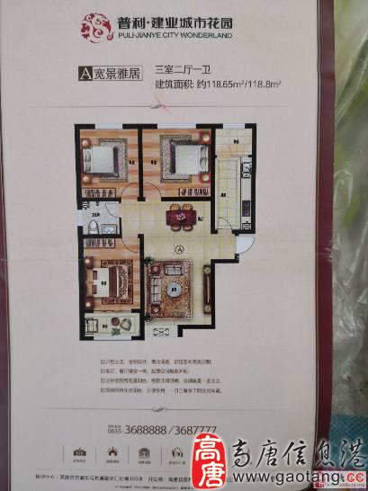 3室/65万/118平米/普利电梯房,紧邻春长职高,有证有储藏室