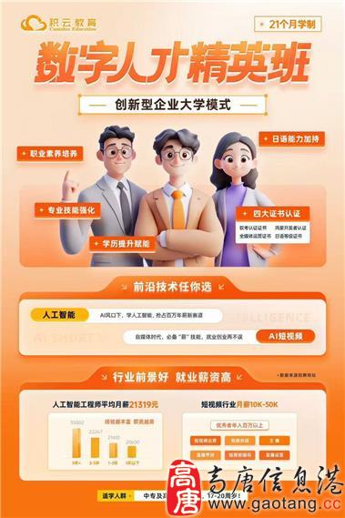 北京积云教育集团10年来,已经有4万多名学生在全国各地城市就业 赋能失业待业青年高薪就业 北京积云教育高唐招生工作室 招聘招生老师10名