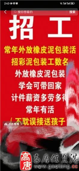 - 大量招聘手工活宝妈们,大姨们外放加工点