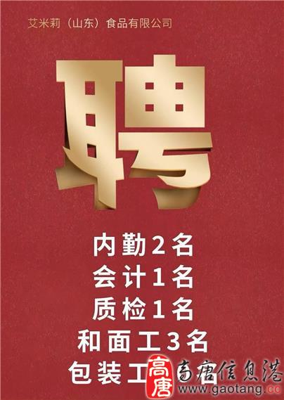 招聘职位:和面工包装工若干名 质检 内勤 会计