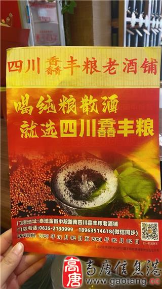 四川馫丰粮老酒铺,于1月2号试营业,届时凭此宣传单页可免费领取小酒一瓶。活动真实有效!