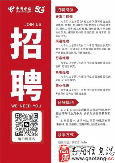 3000-6000元/高唐电信公司招聘