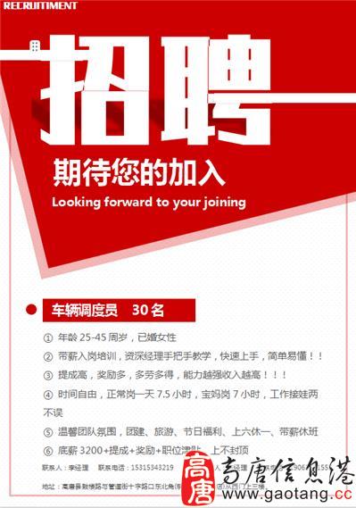 招聘职位:车辆调度员及储备干部