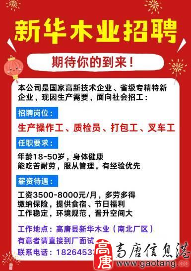 工作地点:高唐县新华木业(南北厂区)