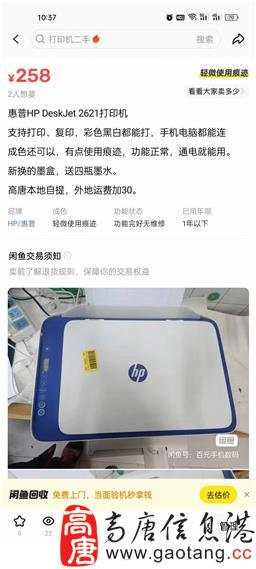 出售二手打印机,可以连接手机和电脑。彩色。适合家庭用。