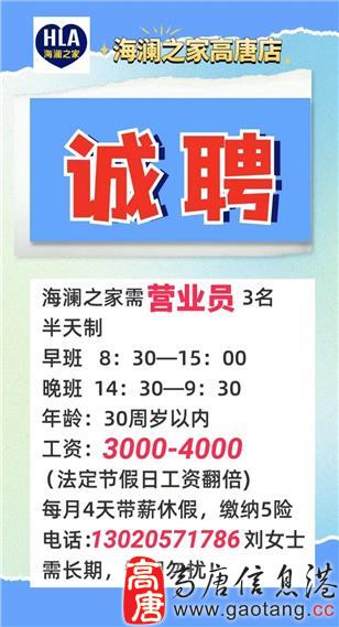 3000-3500元/高唐海澜之家招工啦!