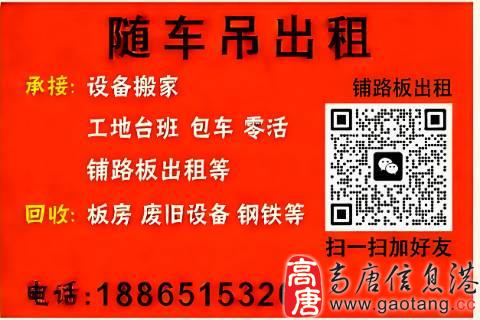 出租12吨国六随车吊,零活,包车,设备搬家等,另收购板房,废旧设备等,出租铺路钢板