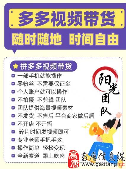 全/兼皆可/6000元/多多视频带货,无需剪辑,搬运即可