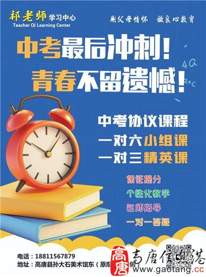 祁老师学习中心,针对即将中考的学生们,开设中考协议班课程,一对三精英课,一对六小组课。