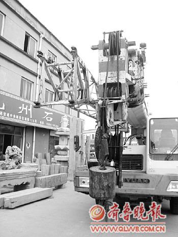 文保人员调来吊车将石塔运走。本报记者吴金彪摄