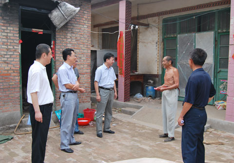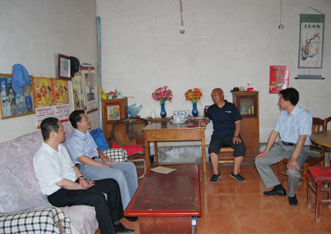 6月25日,在“七一”建党93周年来临之际,县政府办公室有关负责同志分组带领机关党员到结对联系帮包村——固河镇崔官屯村和姜店镇刘平村走访慰问困难群众、党员和建国前老党员。走访慰问中,详细了解了他们的身体状况、生活情况和家庭实际困难,尽可能给予其妥善解决,切实让他们感受到党组织的温暖和关怀。