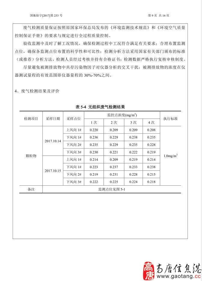 2017年10月份公司委托山东省国衡环境检测有限公司进行该项目的环保验收监测(调查)工作。