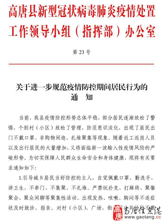 最新通告!高唐所有村庄、小区、单位继续实行24小时封闭管理