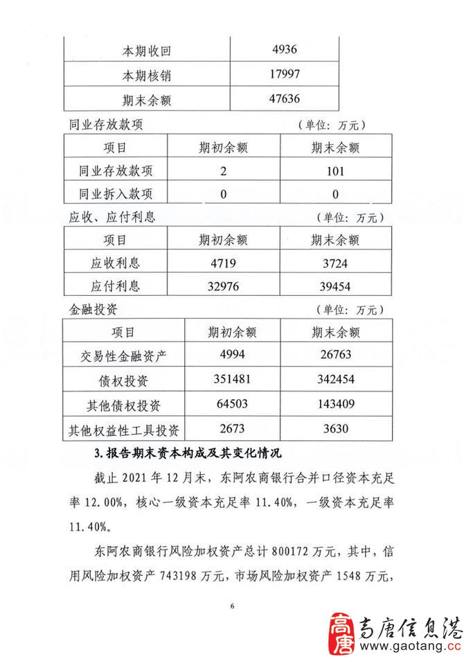 东阿农商银行2021年度信息披露报告